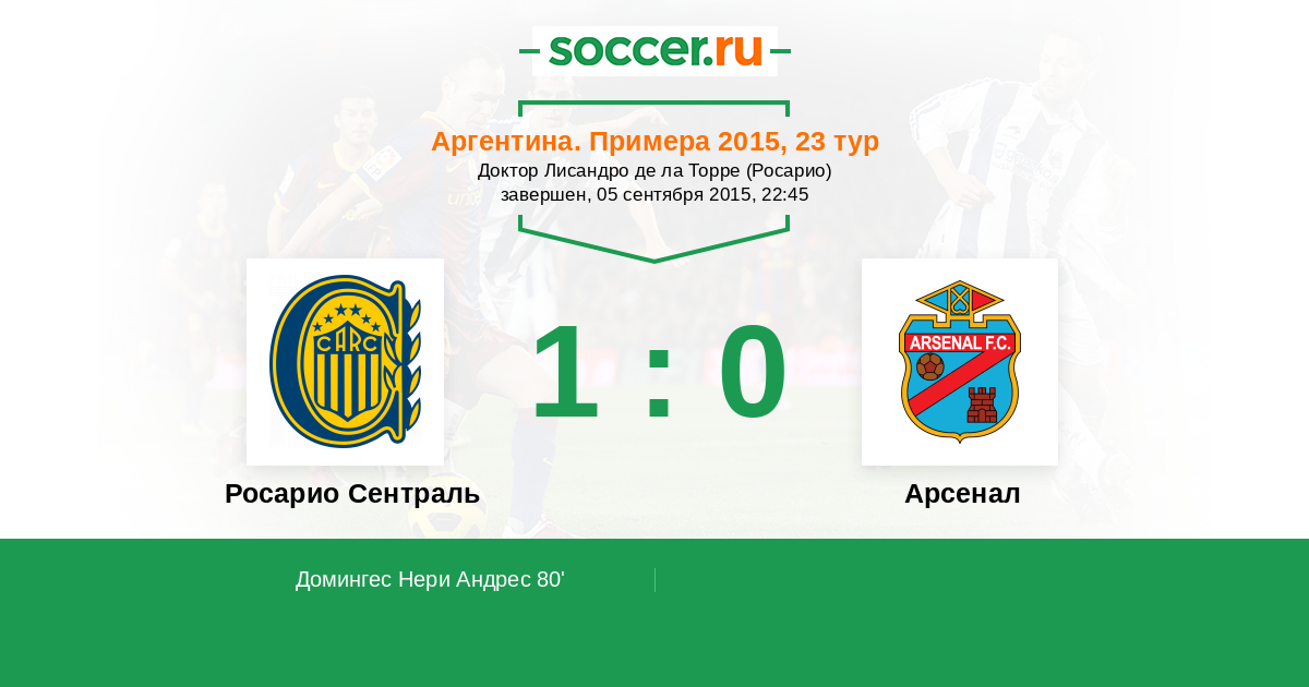 Протокол матча Росарио Сентраль против Арсенал