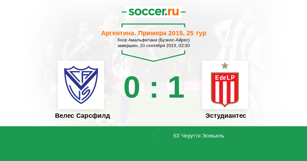 Протокол матча Велес Сарсфилд против Эстудиантес