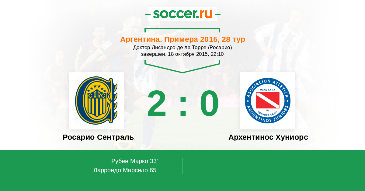 Протокол матча Росарио Сентраль против Архентинос Хуниорс
