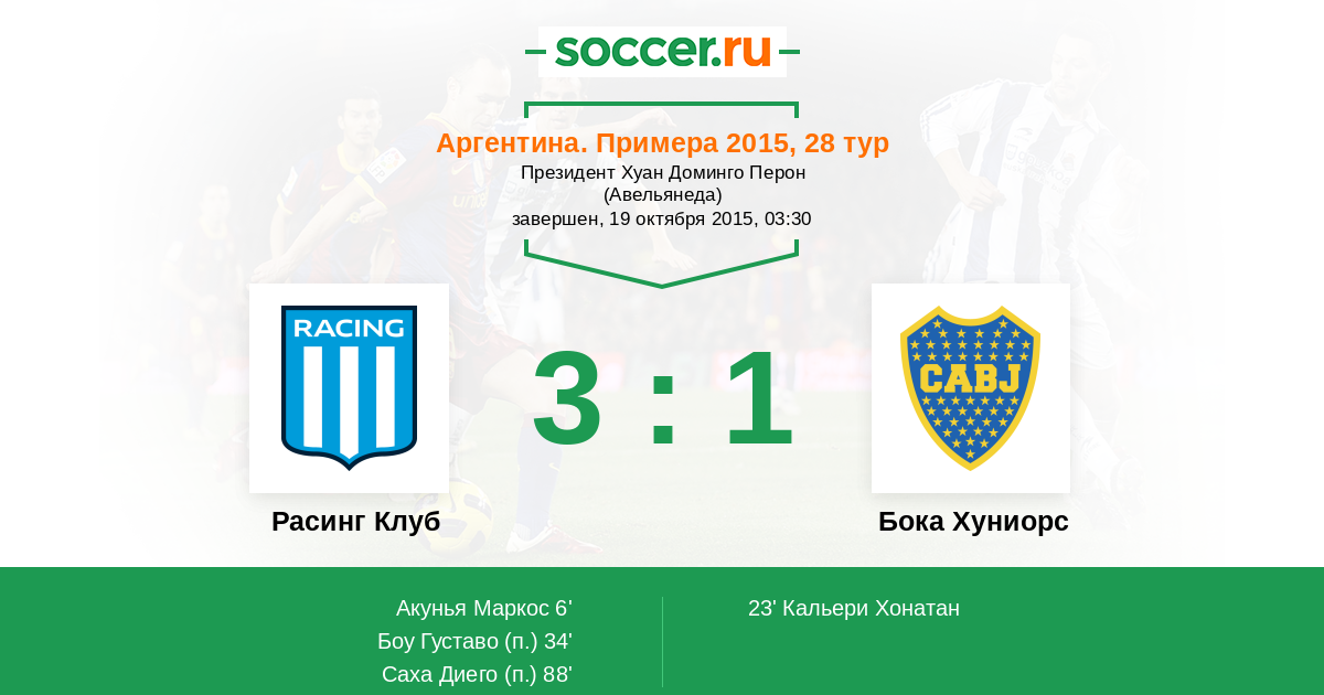 Протокол матча Расинг Клуб против Бока Хуниорс