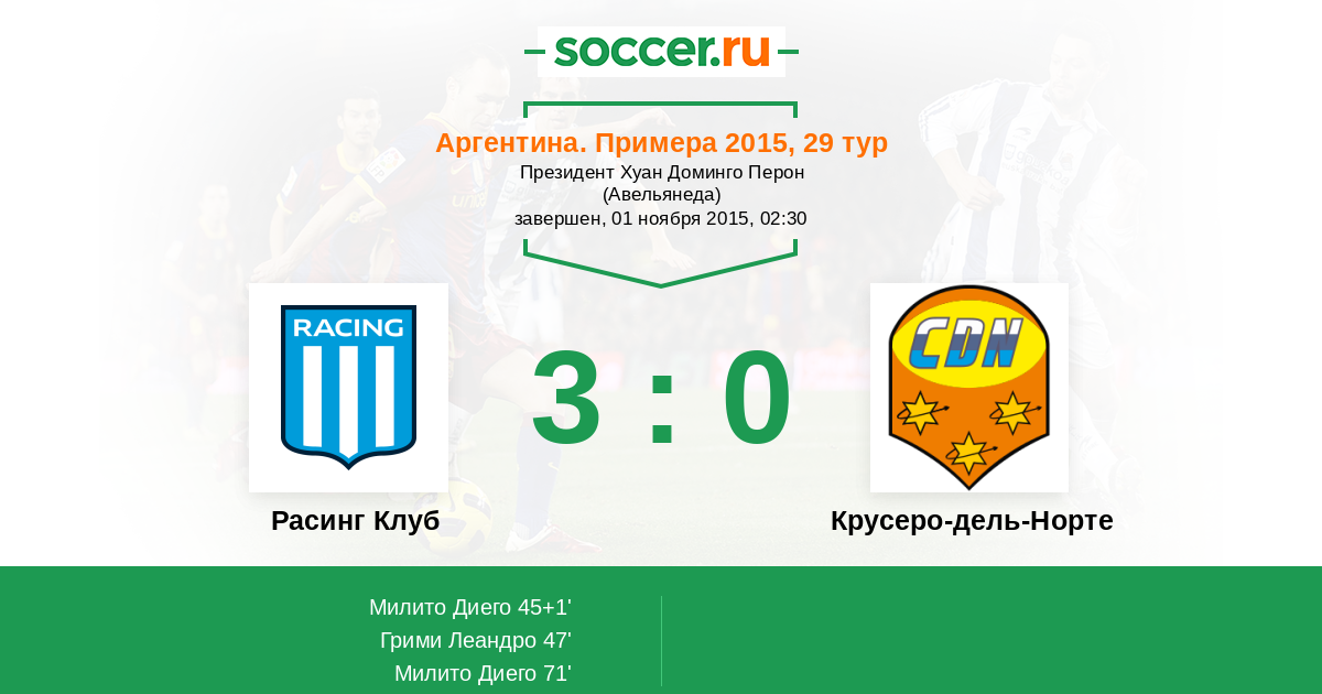 Протокол матча Расинг Клуб против Крусеро-дель-Норте