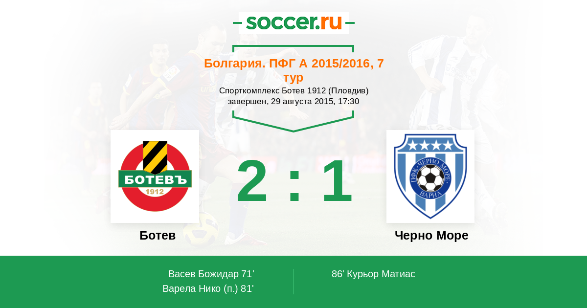 Протокол матча Ботев против Черно Море