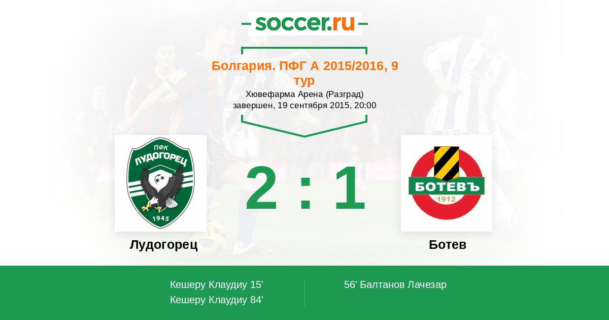 Протокол матча Лудогорец против Ботев
