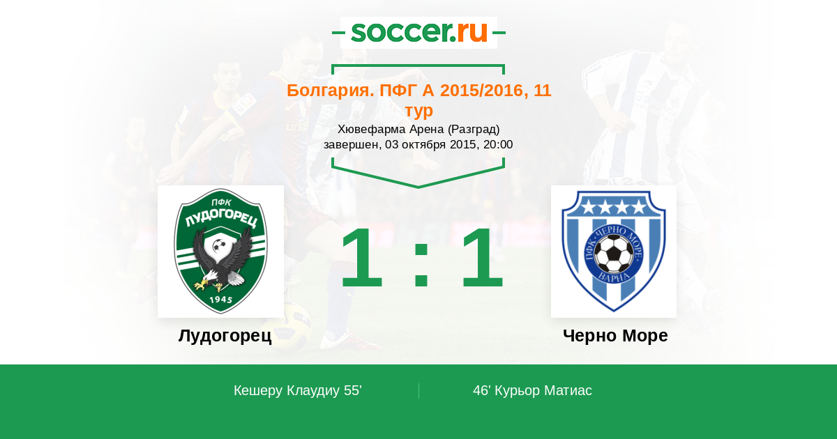 Протокол матча Лудогорец против Черно Море