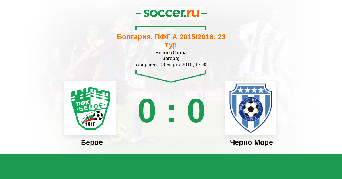 Болгария. Первая лига 06.05.2016 Черно Море Логотип футбольный клуб Черно Море (Варна) 1:0 Логотип футбольный клуб Берое (Стара-Загора) Берое