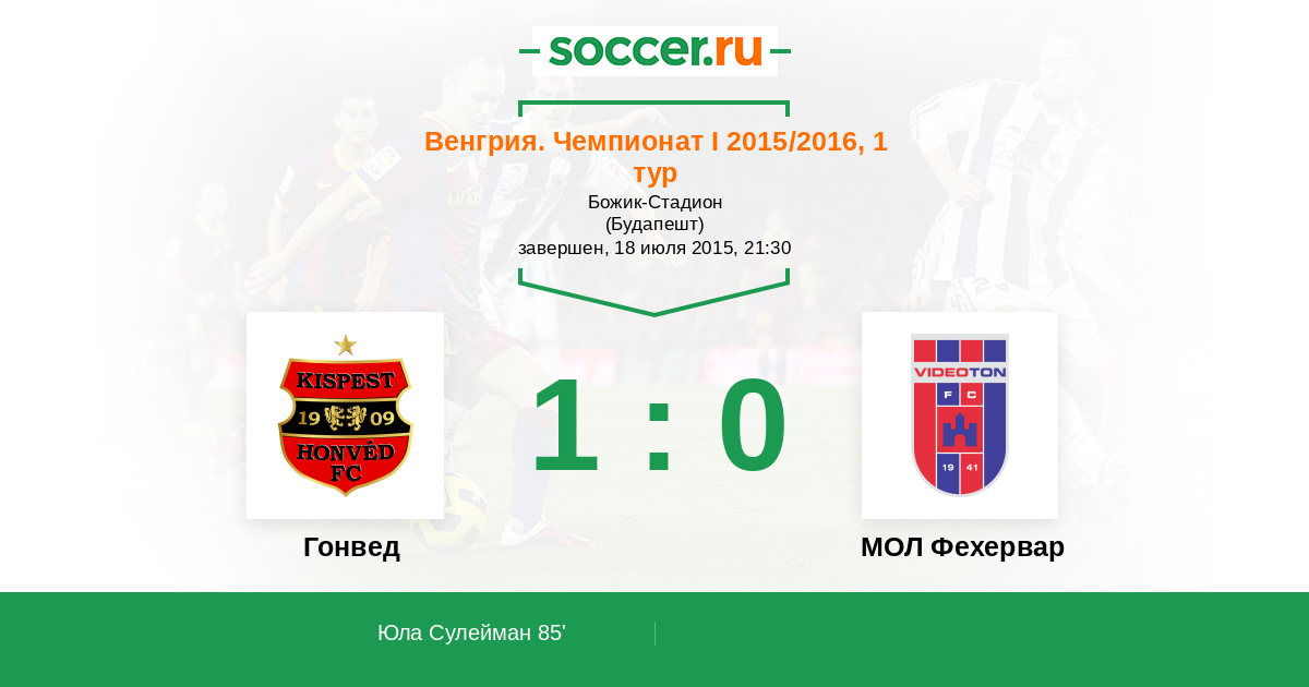 Протокол матча Гонвед против Видеотон