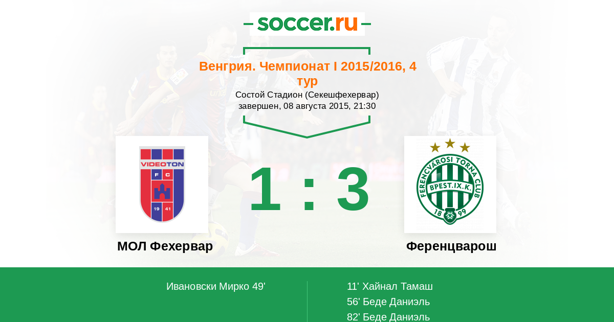 Протокол матча Видеотон против Ференцварош