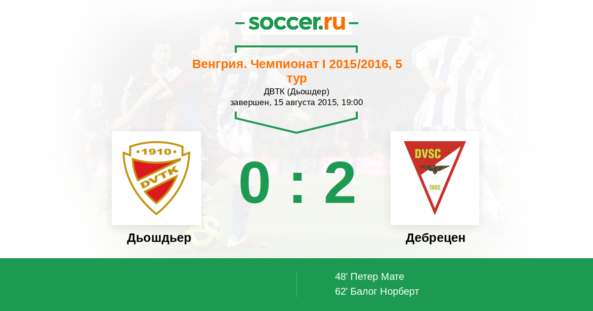 Протокол матча Дьошдьер против Дебрецен