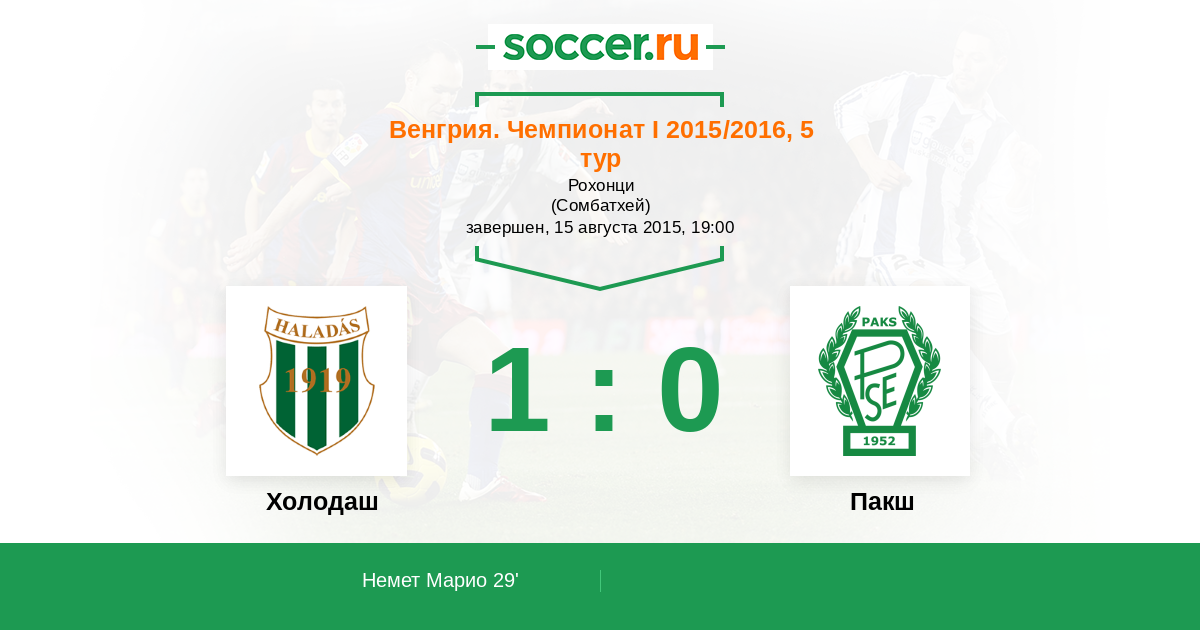 Протокол матча Холодаш против Пакш
