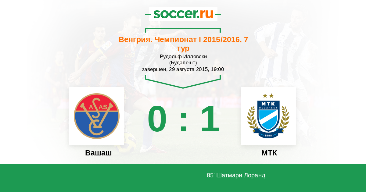 Протокол матча Вашаш против МТК