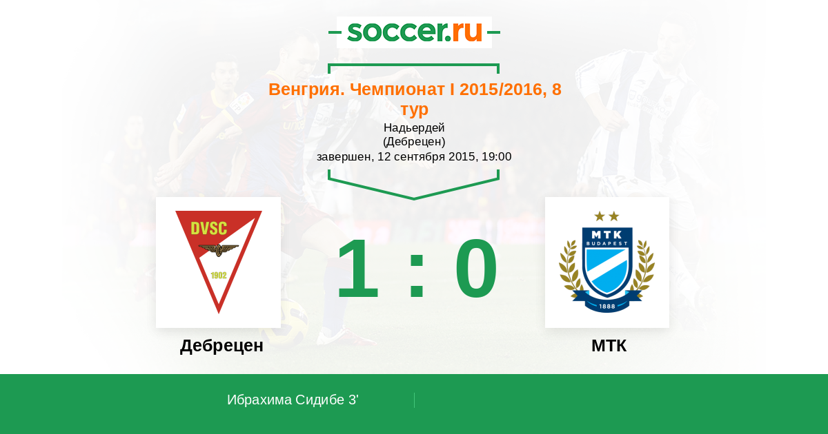 Протокол матча Дебрецен против МТК