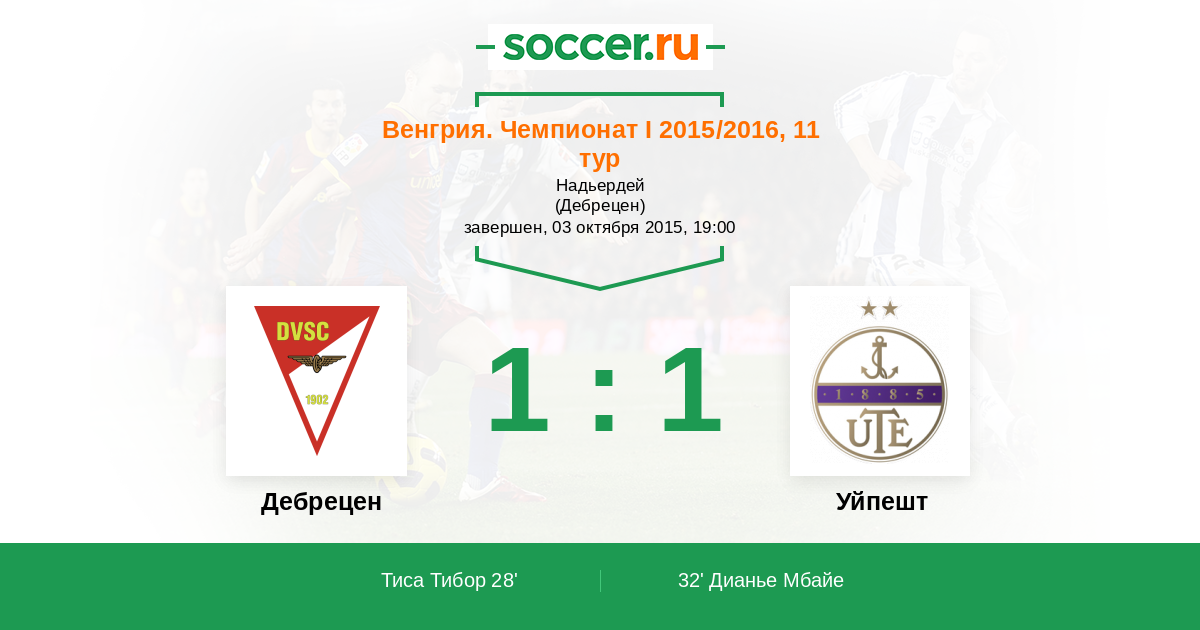 Протокол матча Дебрецен против Уйпешт