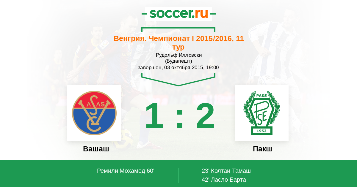 Протокол матча Вашаш против Пакш