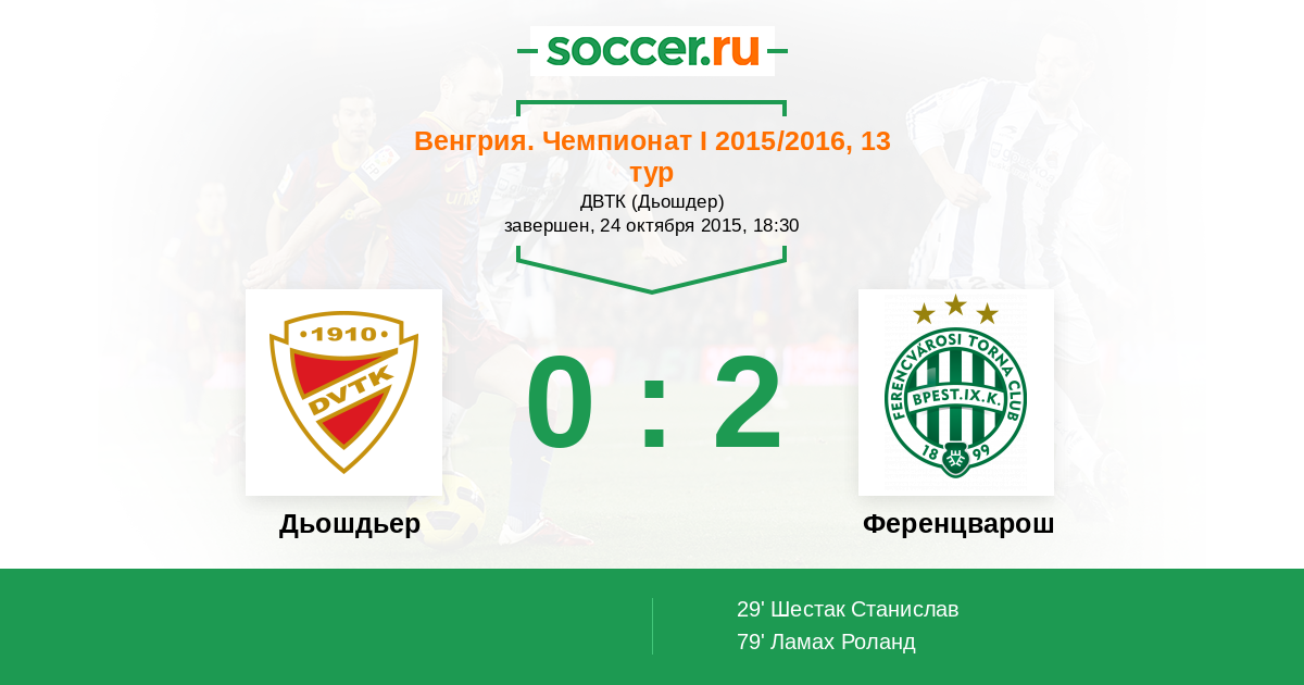 Протокол матча Дьошдьер против Ференцварош