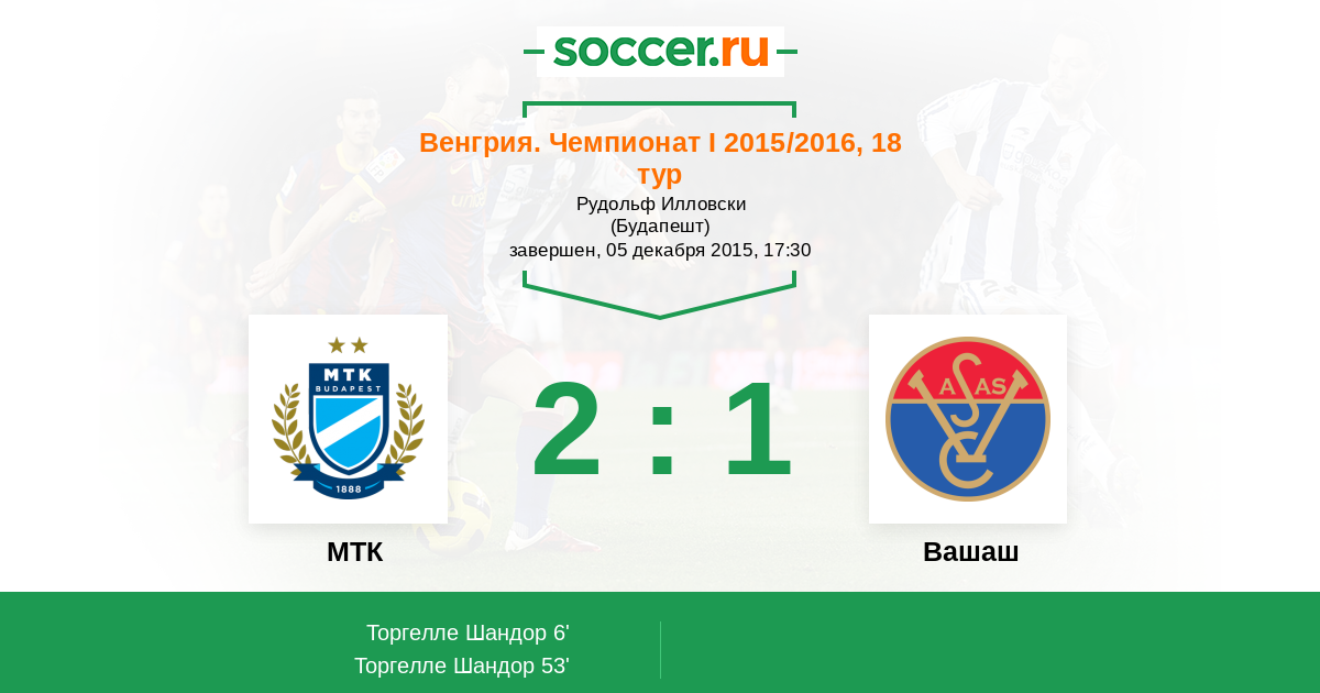 Протокол матча МТК против Вашаш