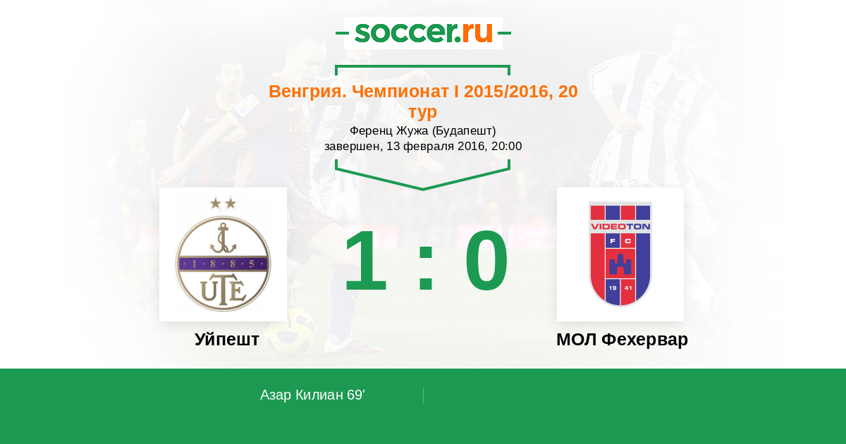 Протокол матча Уйпешт против Видеотон