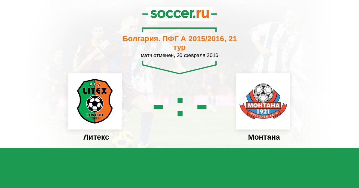 Болгария. Первая лига 20.03.2010 Монтана Логотип футбольный клуб Монтана 0:0 Логотип футбольный клуб Литекс (Ловеч) Литекс