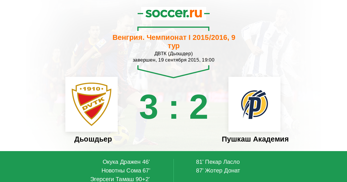 Протокол матча Дьошдьер против Пушкаш Академия