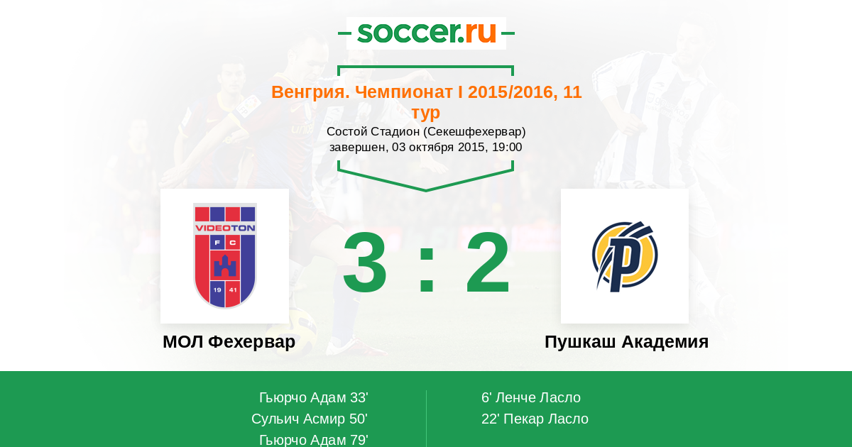 Протокол матча Видеотон против Пушкаш Академия