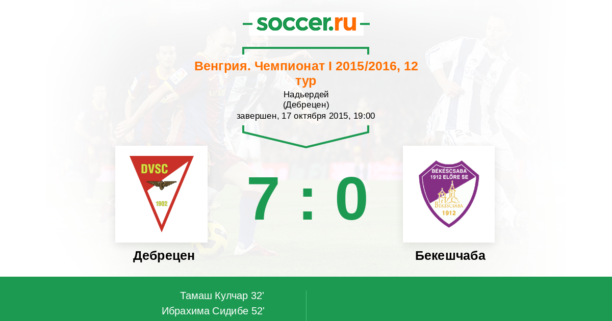 Протокол матча Дебрецен против Бекешчаба