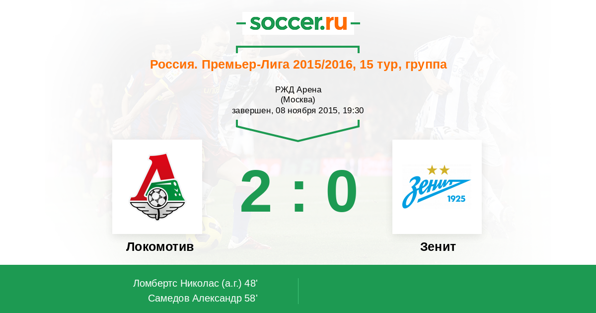 Протокол матча Локомотив против Зенит