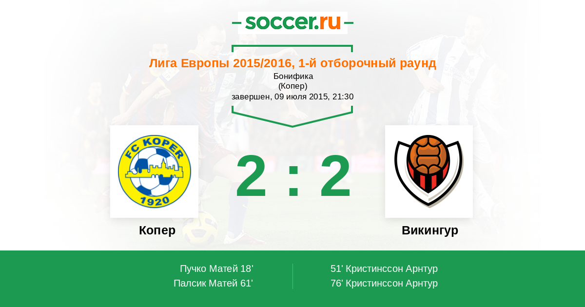 Протокол матча Копер против Викингур