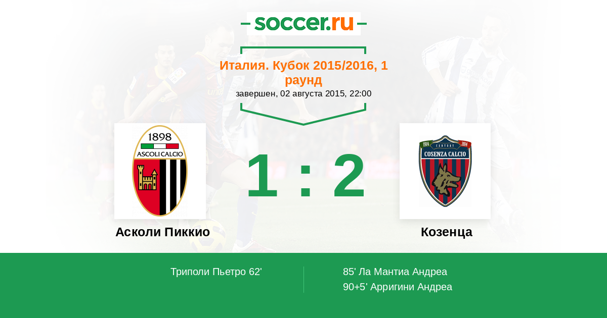 Замена80' Триполи Пьетро уходит с поля, Мустаччио Маттиа вышел на поле