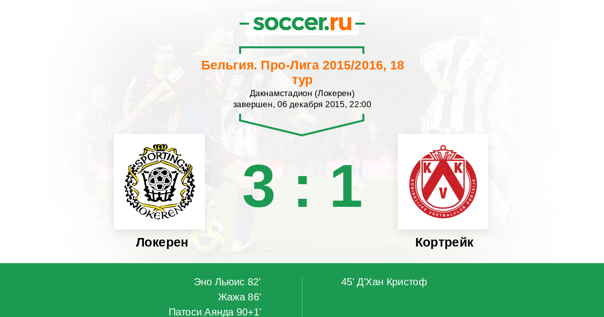 Протокол матча Локерен против Кортрейк
