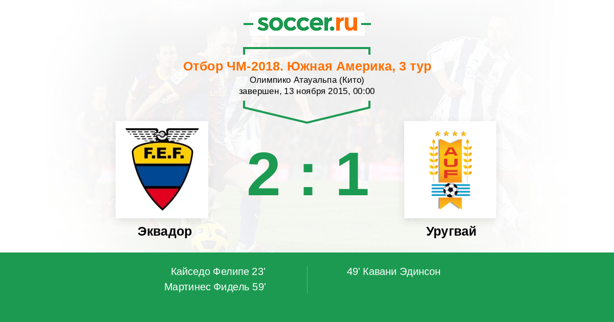 Протокол матча Эквадор против Уругвай