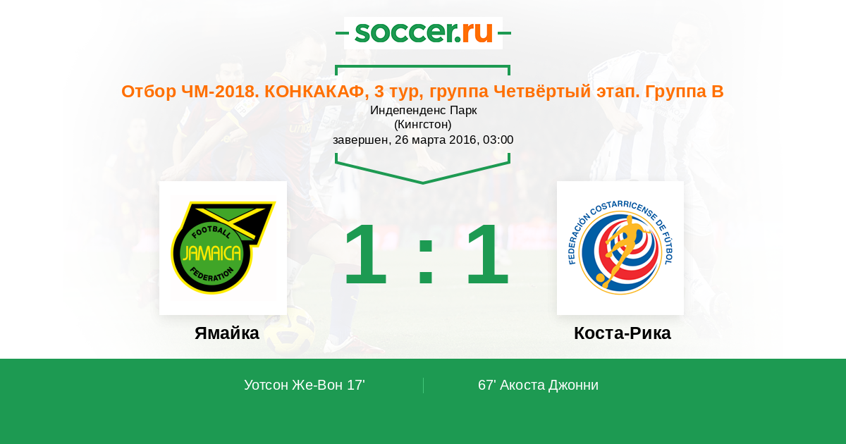 Протокол матча Ямайка против Коста-Рика