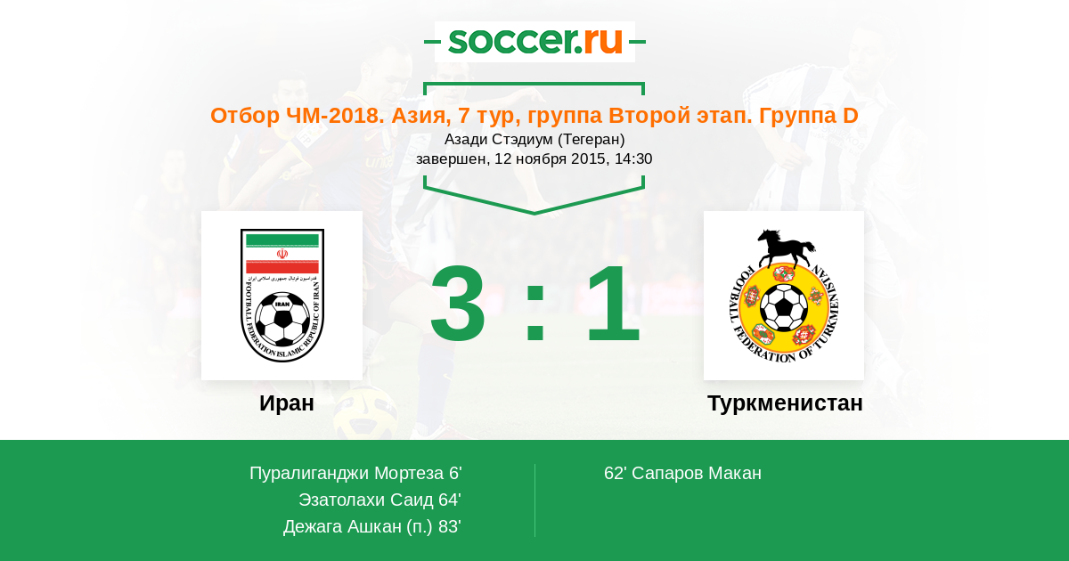 Протокол матча Иран против Туркменистан