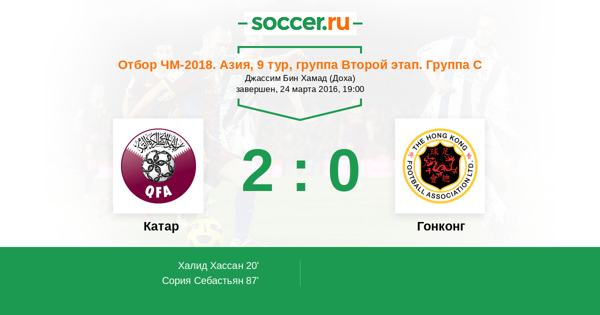 Протокол матча Катар против Гонконг
