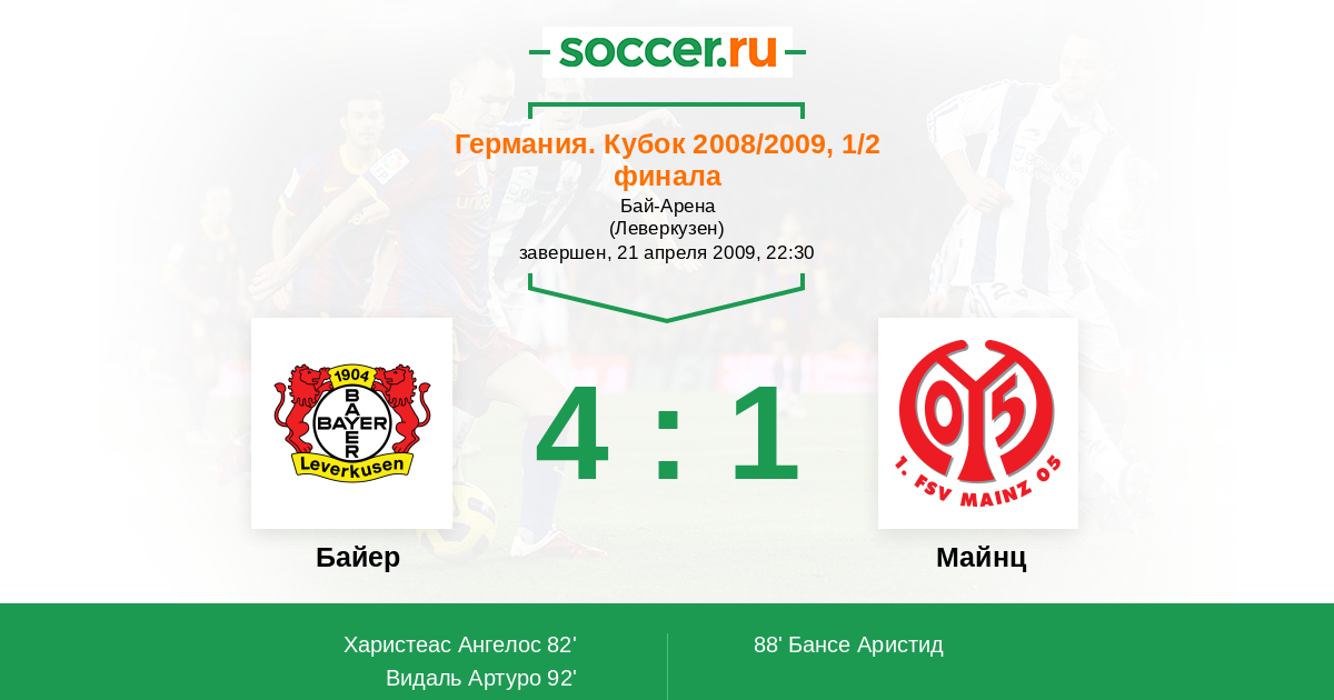 Протокол матча Байер против Майнц