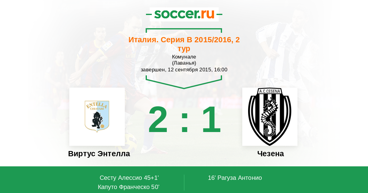 Протокол матча Виртус Энтелла против Чезена