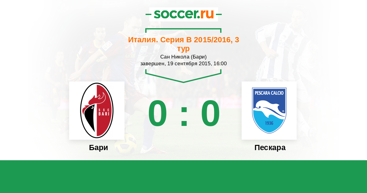 Протокол матча Бари против Пескара