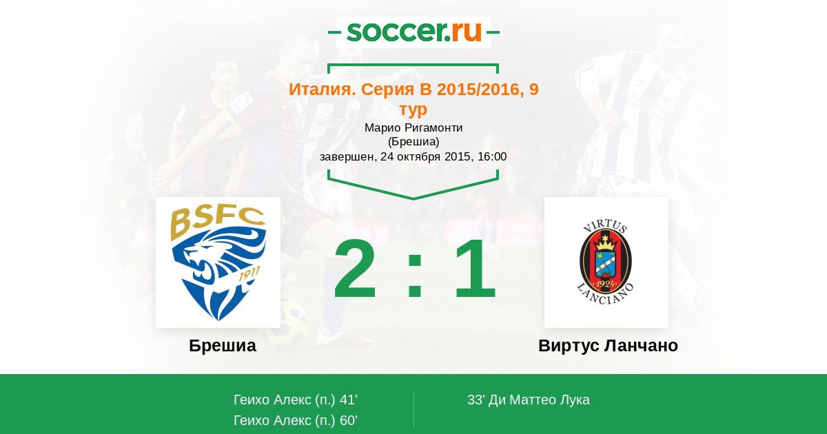 Протокол матча Брешиа против Виртус Ланчано