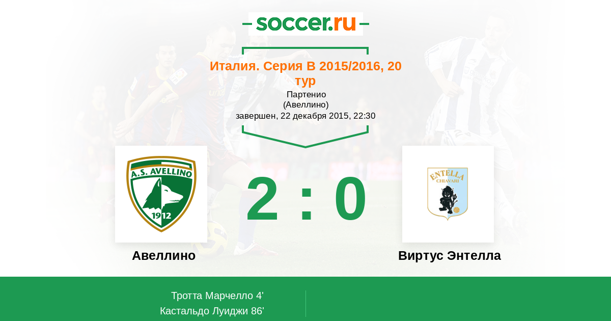 Протокол матча Авеллино против Виртус Энтелла