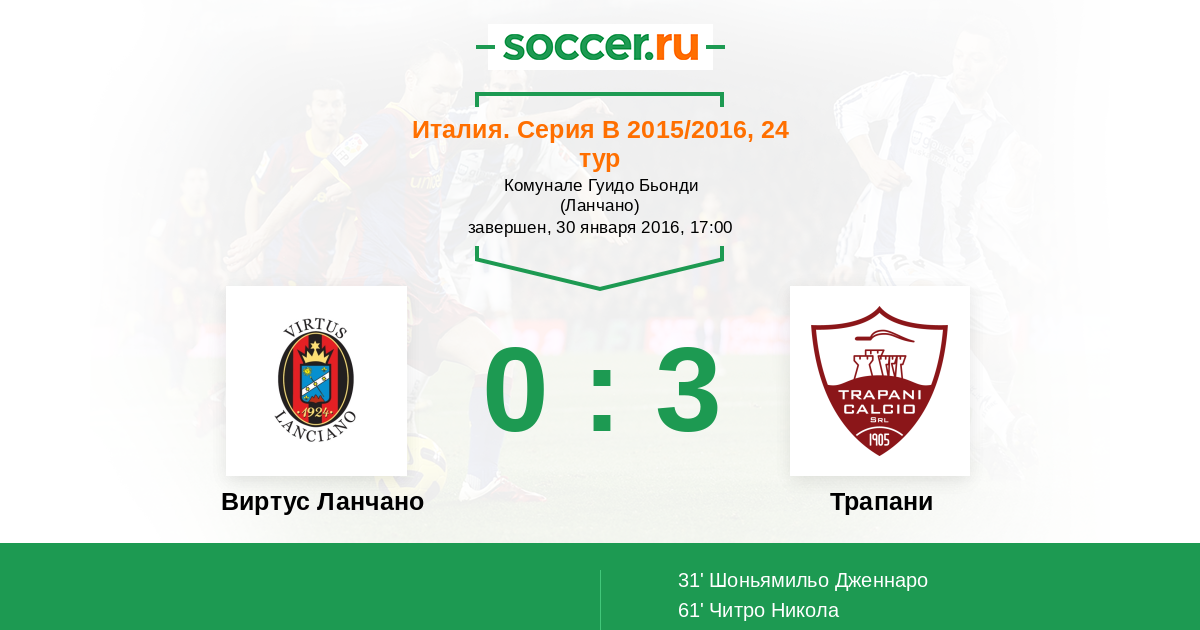 Протокол матча Виртус Ланчано против Трапани
