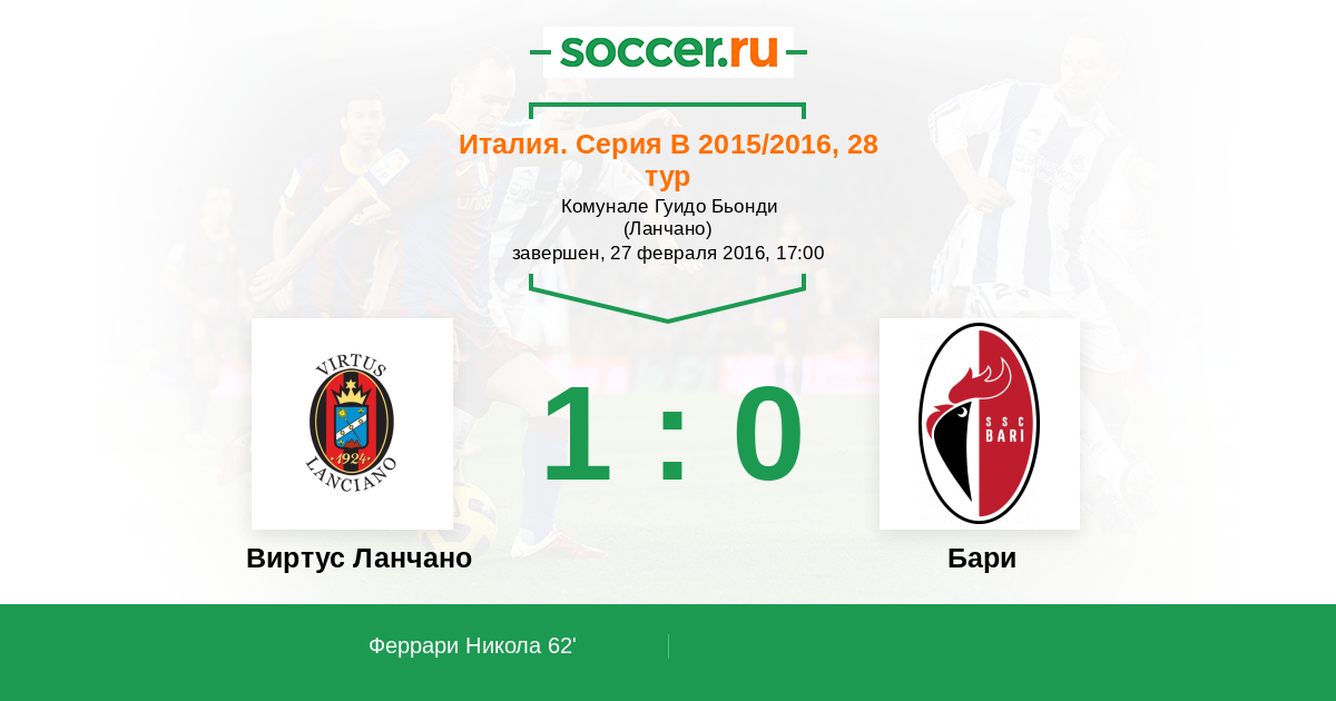 Протокол матча Виртус Ланчано против Бари