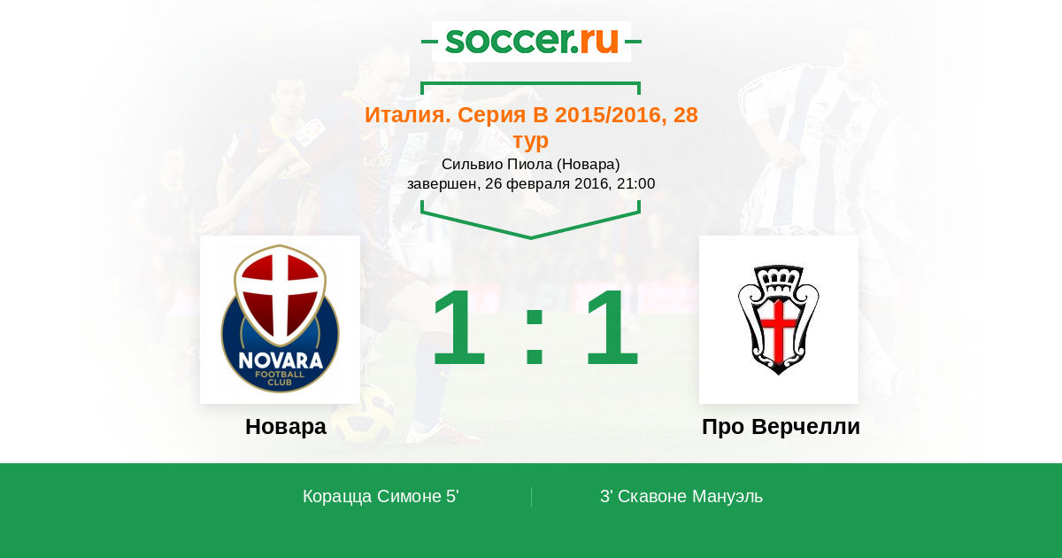 Протокол матча Новара против Про Верчелли