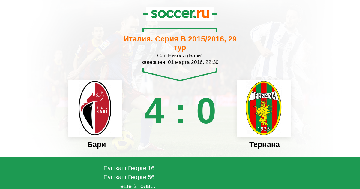 Протокол матча Бари против Тернана