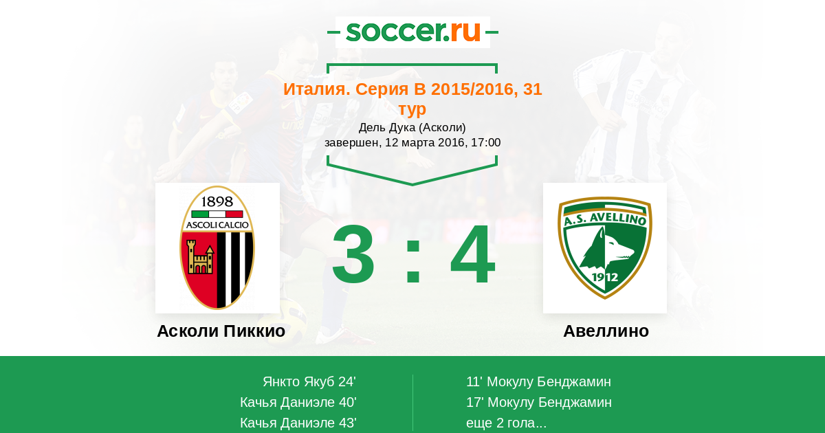 Протокол матча Асколи Пиккио против Авеллино