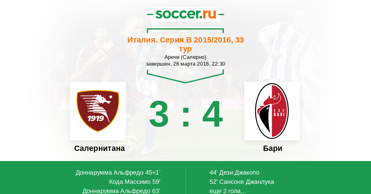 Протокол матча Салернитана против Бари