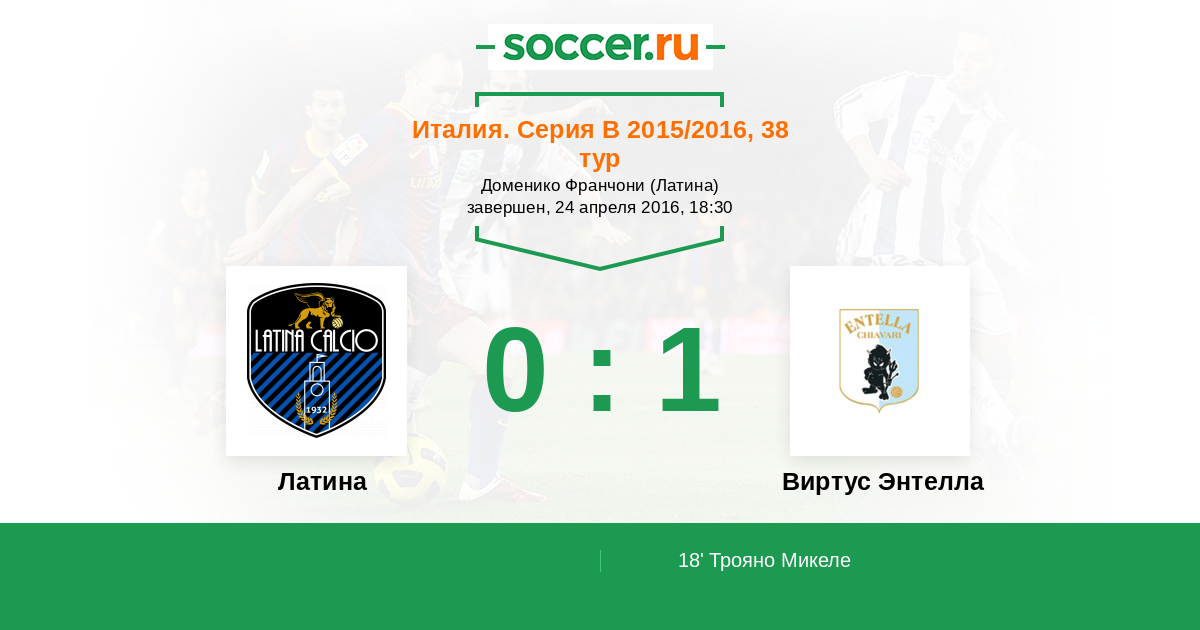 Протокол матча Латина против Виртус Энтелла