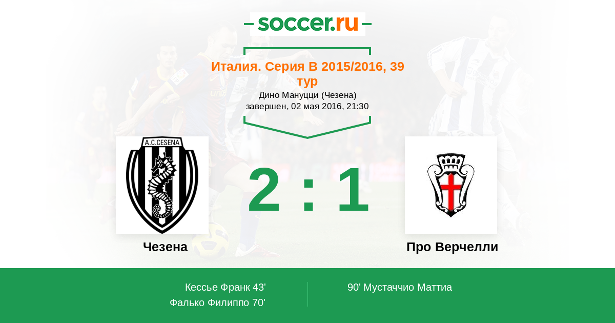 Протокол матча Чезена против Про Верчелли