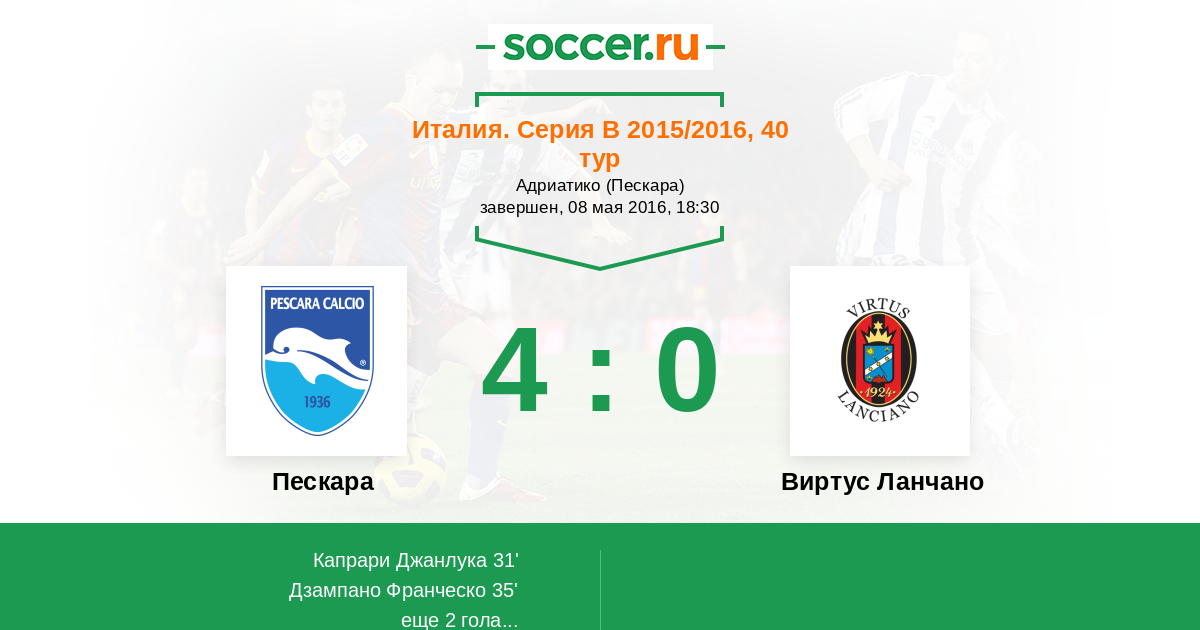 Протокол матча Пескара против Виртус Ланчано