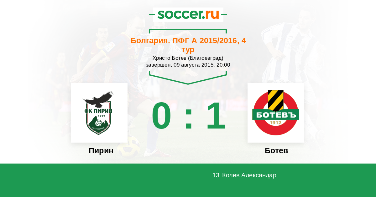 Протокол матча Пирин против Ботев