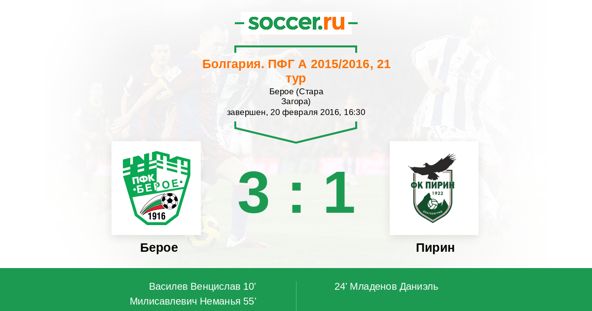 Протокол матча Берое против Пирин