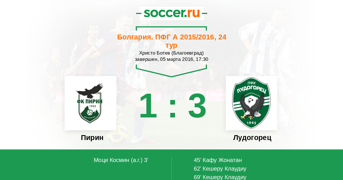 Протокол матча Пирин против Лудогорец