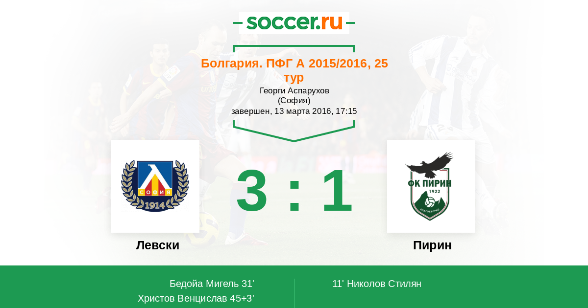 Протокол матча Левски против Пирин